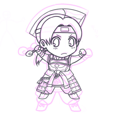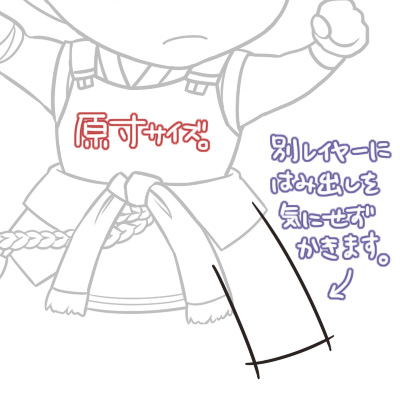 今までとおなじく下書きの色を変えて、別レイヤーに主線を引いていきます。
