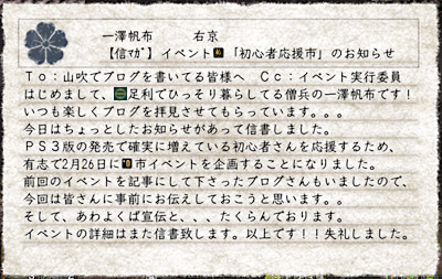 ・一会衆メンバーの所属する各勢力私設で告知を流す