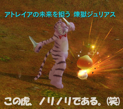 虎の着ぐるみ(変身薬)で狩りするレンさん。