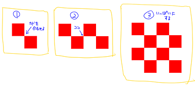③画面がうるさくなりすぎないように、グラデーションで市松模様をぼかす