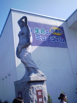 お花畑に出産してる女性の模型があるんですが、元気にとびだしてきてる赤ん坊がコワイw