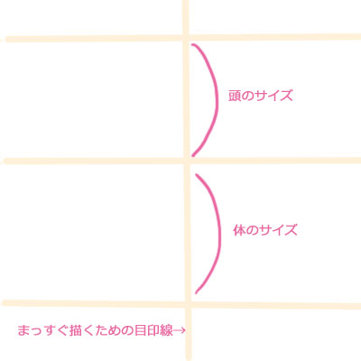 完成画像の2倍程度の大きさを目安に描き始めることが多いです。
