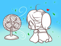 前日は暑くて閉口した仕事環境ですが、制作のNくんが小型扇風機を発掘してくれて