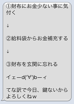 私 「(ボー…)いつものとこ・・・(眠い)・・・っていうか昨日お給料もらってこなかったっけ?」