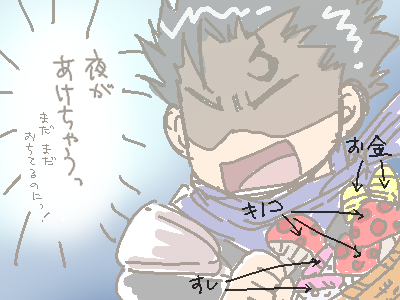 もたもたしてると「夜があけてしまう…急がねば…」というメッセージが出るんです。
